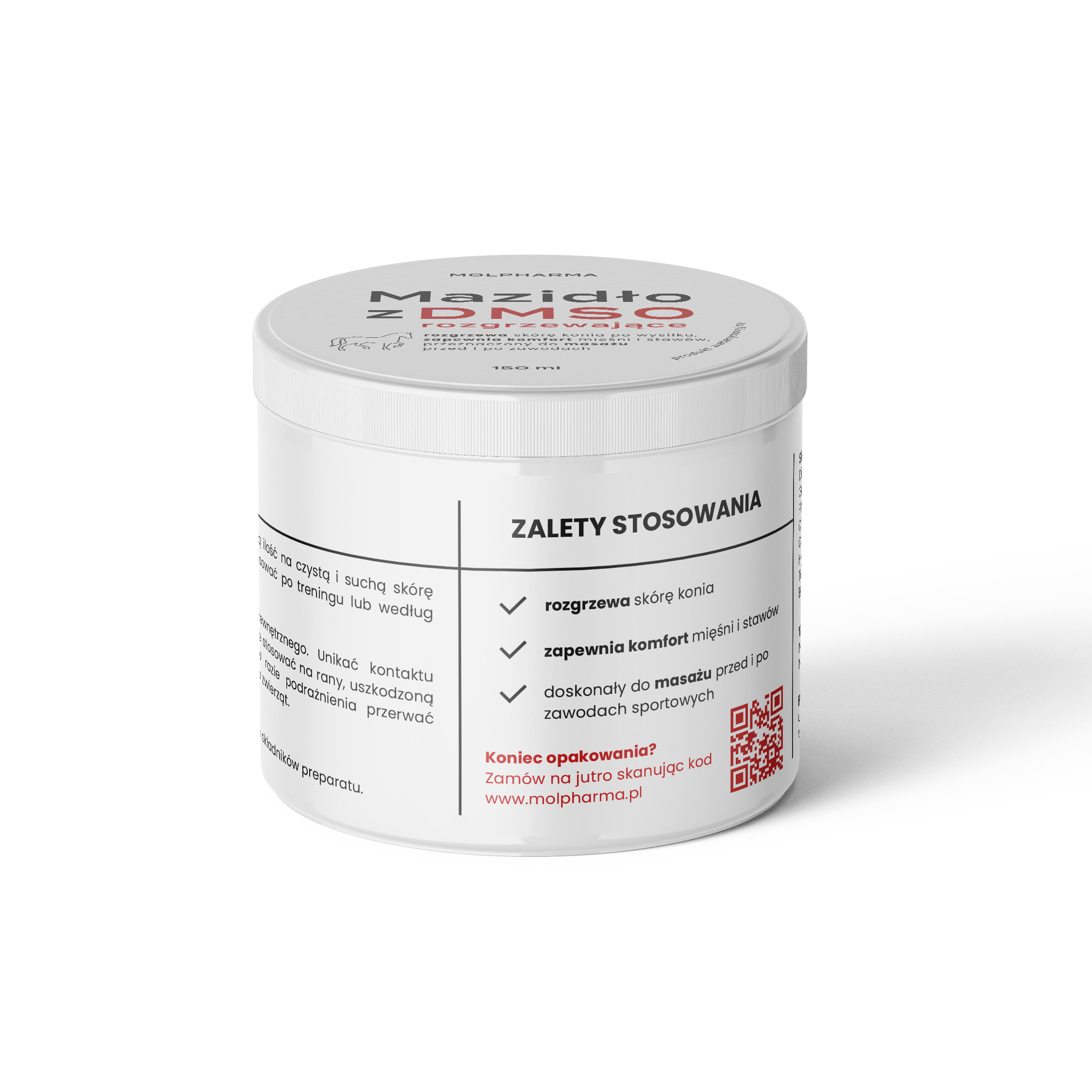 - Wspiera komfort ruchowy i kondycję konia po treningu.
