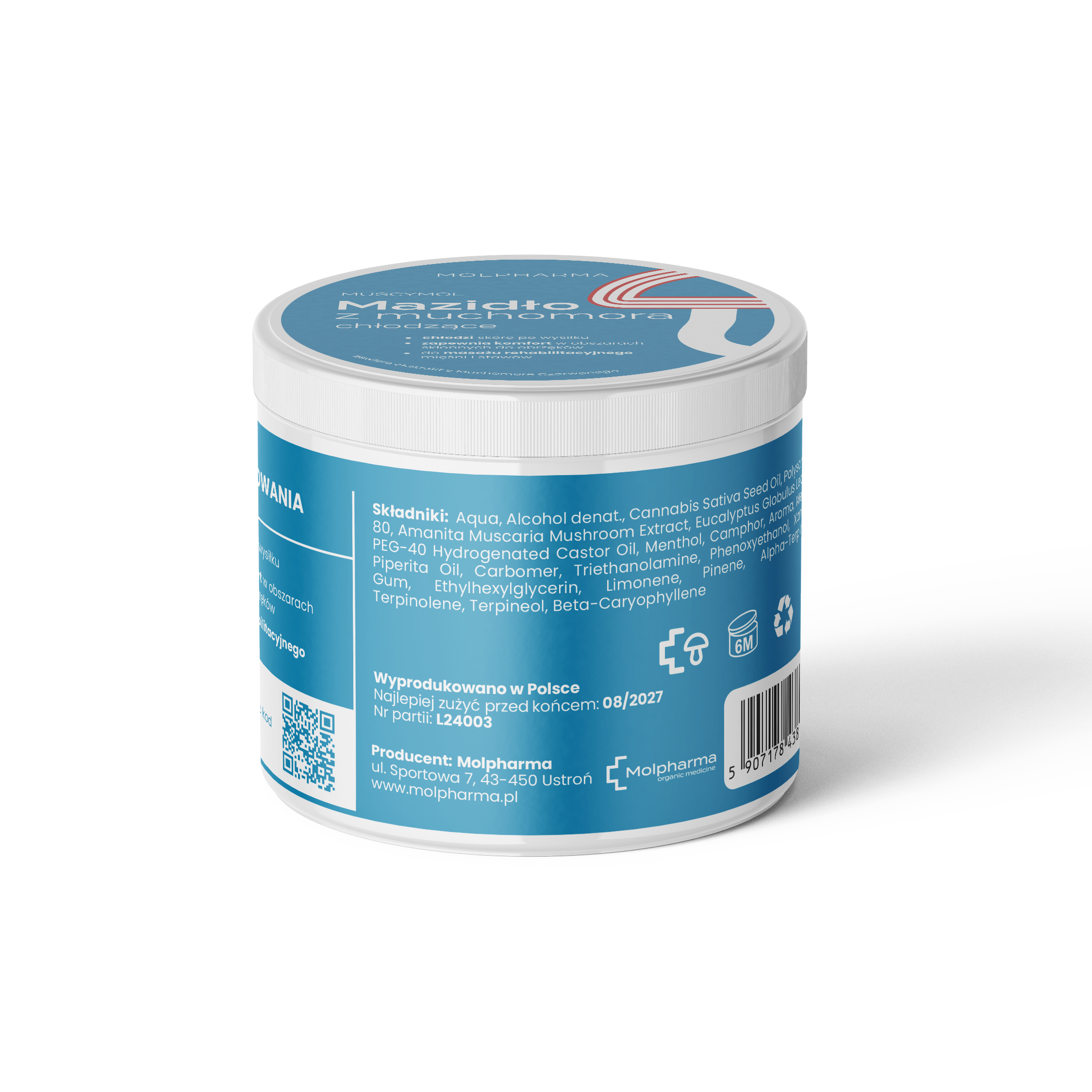 Mazidło z muchomora chłodzące to innowacyjny kosmetyk łączący właściwości ekstraktu z muchomora czerwonego z naturalnymi substancjami chłodzącymi, takimi jak mentol oraz ekstrakty roślinne. Ekstrakt z muchomora czerwonego jest ceniony w tradycyjnej fitoterapii za działanie łagodzące i wspierające regenerację skóry. Mentol zapewnia natychmiastowe uczucie chłodzenia i świeżości, przynosząc ulgę po wysiłku fizycznym lub w przypadku zmęczenia mięśni. Lekka formuła mazidła szybko się wchłania, nie pozostawia tłustej warstwy i jest odpowiednia dla skóry wrażliwej. Regularne stosowanie wspiera regenerację, łagodzi napięcia i przynosi uczucie komfortu. Produkt nie zawiera sztucznych barwników ani konserwantów.