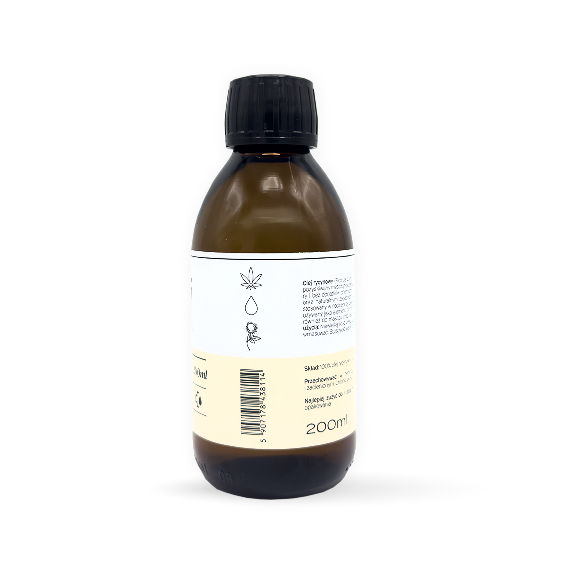 Olej rycynowy (Ricinus communis seed oil) tłoczony na zimno z nasion rącznika pospolitego to w 100% naturalny olej roślinny o gęstej, lepkiej konsystencji i charakterystycznym, lekko orzechowym zapachu. Zawiera 85-90% kwasu rycynolowego – unikalnego kwasu tłuszczowego omega-9 występującego niemal wyłącznie w tym oleju – oraz kwasy oleinowy, linolowy i fitosterole. Tworzy na skórze ochronną warstwę lipidową zapobiegającą utracie wilgoci, wspiera regenerację bariery hydrolipidowej i natłuszcza przesuszone obszary. Nierafinowany produkt zachowuje pełne właściwości odżywcze, przeciwutleniające i zmiękczające. Stosowany systematycznie poprawia kondycję skóry, paznokci i włosów. Przeznaczony wyłącznie do użytku zewnętrznego w pielęgnacji kosmetycznej. Produkt bez konserwantów, rozpuszczalników i syntetycznych dodatków.