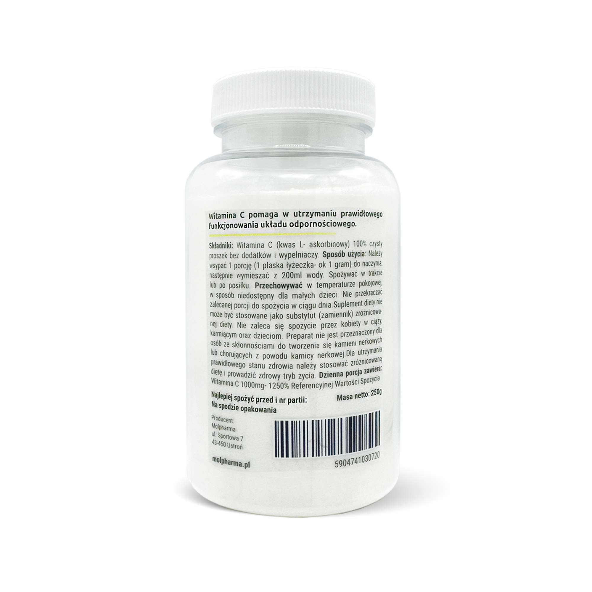 Witamina C (kwas L-askorbinowy) to jeden z najważniejszych antyoksydantów, niezbędny do prawidłowego funkcjonowania organizmu. Regularna suplementacja wspiera układ odpornościowy, pomaga chronić komórki przed stresem oksydacyjnym oraz bierze udział w syntezie kolagenu, co jest kluczowe dla zdrowia skóry, kości i naczyń krwionośnych. Witamina C zwiększa przyswajanie żelaza niehemowego oraz przyczynia się do zmniejszenia uczucia zmęczenia i znużenia. Produkt polecany jest osobom aktywnym, seniorom, osobom narażonym na stres oraz w okresach obniżonej odporności. Skuteczność witaminy C potwierdzają liczne badania naukowe oraz pozytywne opinie użytkowników.